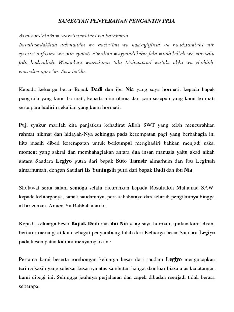 Teks penyerahan pengantin pria singkat. We did not find results for: Maybe you would like to learn more about one of these? Check spelling or type a new query.